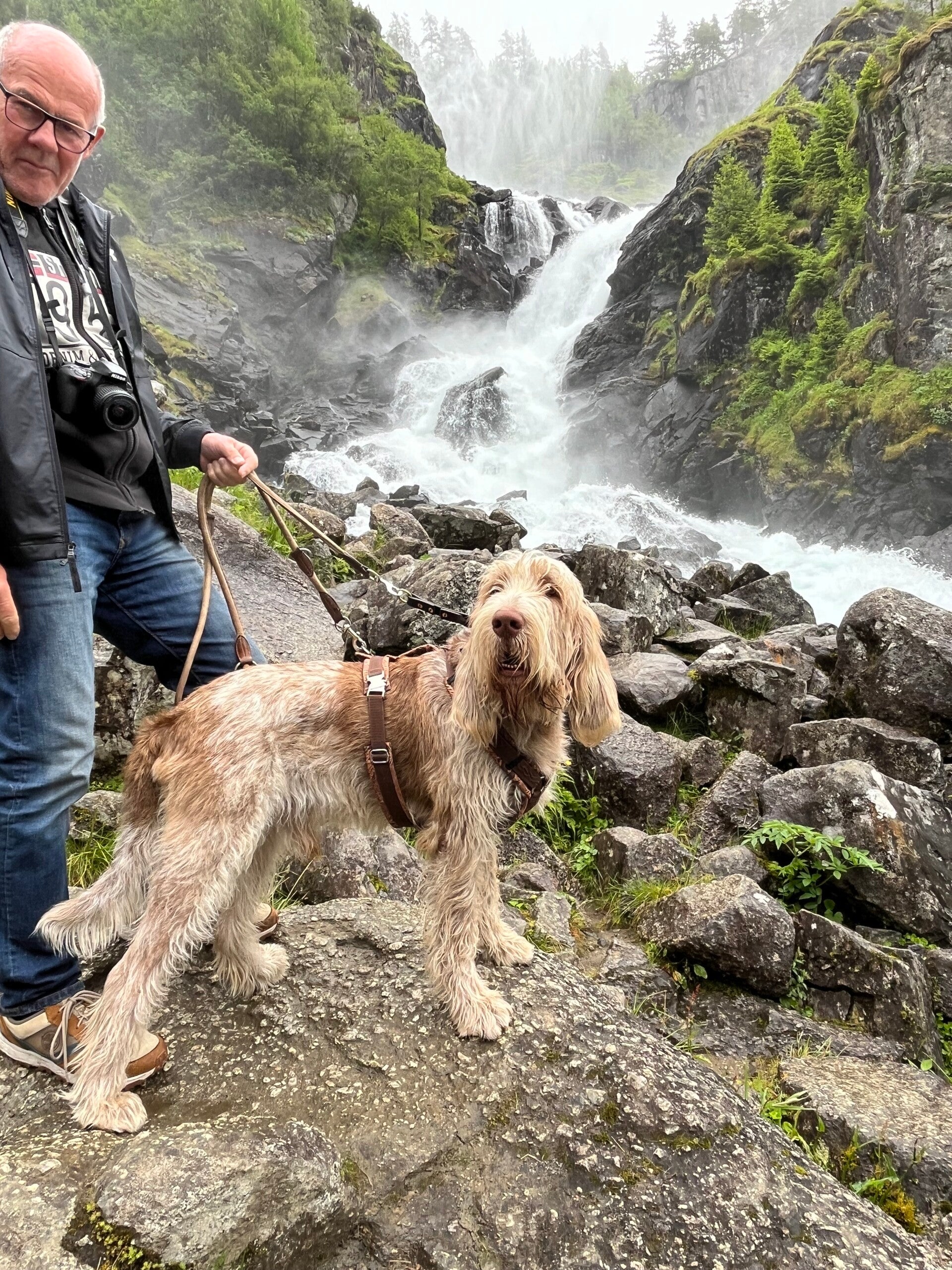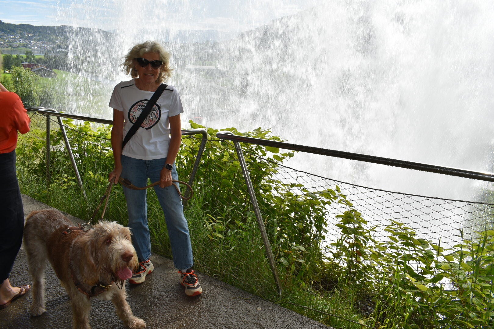 ... das nächste Kreuzfahrtschiff lief ein, diesmal wohl eine Nummer kleiner als die Aida. Bei wieder einmal herrlichem Sonnenschein konnten wir früh am Morgen den schönen Campingplatz in Richtung Noresund verlassen. Auf dem tunnelreichen und kurvigen Weg galt unser erster Stopp dem Vöringsvossen. Ein eindrucksvolles Naturspektakel - von der Tourismusbranche Norwegens sehr durchdacht und anspruchsvoll mit Aussichtsplattformen und befestigten Wegen in Szene gesetzt. Watson hat definitiv keine Höhenangst! Zwei gegenüberliegende Fossen stürzen sich in die Tiefe und graben eine tiefe Schlucht ins Gebirge. Schwindelerregende Hängebrücke und überhängende Metallplattformen ermöglichen wunderschöne Bilder und Perspektiven. Unsere Fahrt führte uns anschließend ins Hochgebirge des Hadangervidda Nationalparks, vorbei am Hadanarjøkulen (1876m) und dem Hallingskarvet 1877m. Die alpine Hochebene (76qkm) war geprägt vom Gletscher, zahlreichen Schneefeldern, Schmelzwasser, Seen und karger Steinlandschaft .... für uns alles bei praller Sonne. Drei Meter hohe Stangen am Straßenrand zeigten uns die Schneemassen im Winter an, Gondeln, Skipisten und Skihotels säumten den Weg, der uns weiter auf der E7 über Goa nach Goll führte. Dort besichtigten wir die Stabkirche aus dem 13. Jahrhundert. Dicke runde Holzpfeiler bilden das standfeste Gebilde der Kirche. Stammdicke Bohlen sind daran ohne Fundament verankert. Drachenschnitzereien säumen den Eingang. Die Kirche wurde zunächst katholisch, später evangelisch im Kanzelbereich umgearbeitet und umgewidmet - erzählte die passend gewandete Fremdenführerin. Kurz hinter Noresund fanden wir unseren Übernachtungsplatz ... wieder einmal direkt am Wasser.