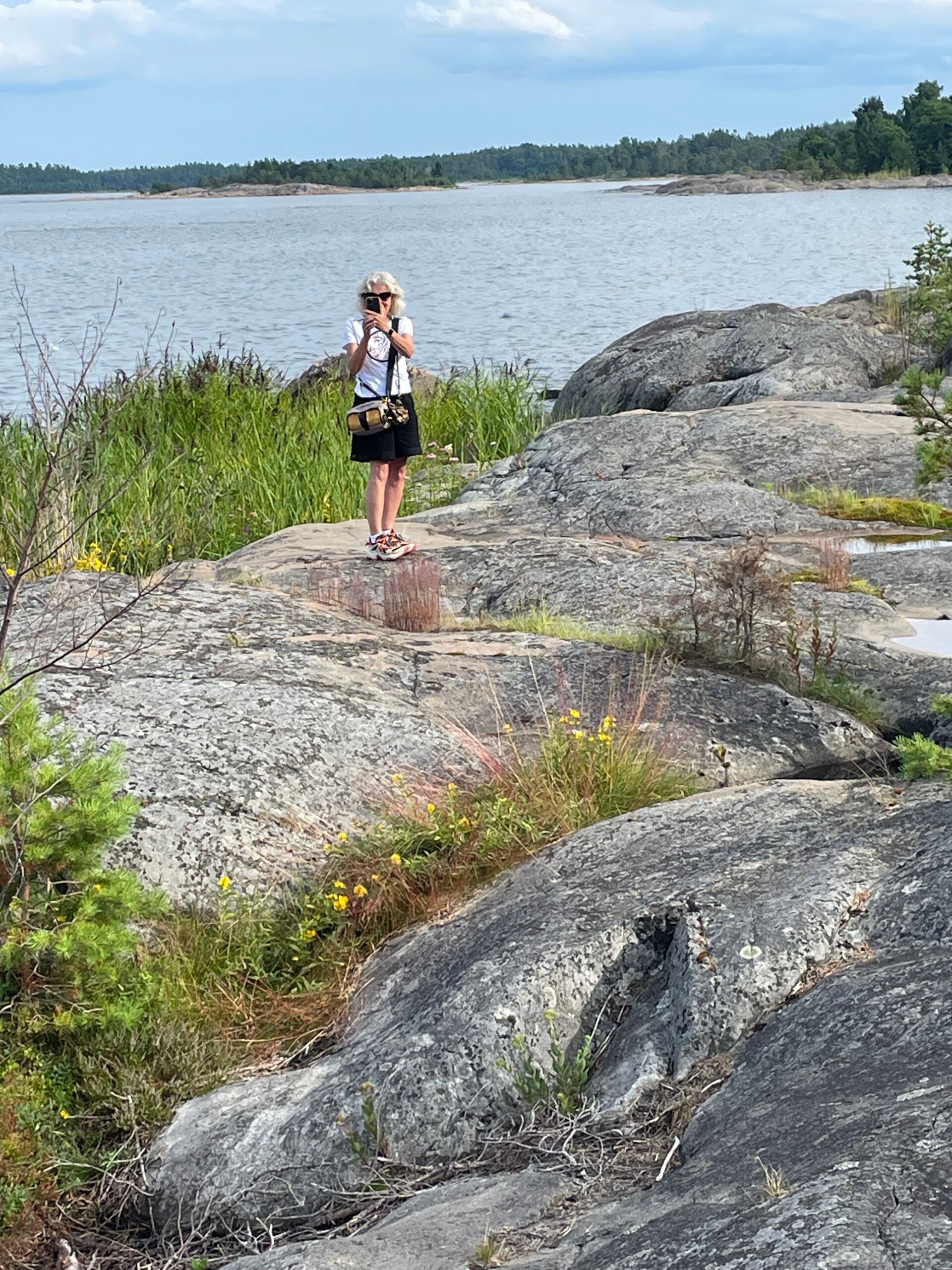 wir verließen Angskär früh morgens. Der Himmel war bedeckt, es hatte nachts geregnet. Durch die idyllische Felsenlandschaft der Küste mit Kiefern, Birken, Farnen und Flechten gelangten wir zurück auf die E4 Richtung Stockholm. Der Reifenwechsel hatte Wunder vollbracht … die Straßenlage unseres Wohnmobil—Allrads war trotz nassem und Spurrillen belastetem Untergrunds hervorragend. In zügigem Tempo fuhren wir an Upsala vorbei und passiertem bei mäßigem Stau auch Stockholm. Unser laut Schwedestops als vorzüglich ausgewiesenes Café lag im Hinterland von Nynäshamn. Wir aßen dort zu Mittag und gingen ein wenig spazieren, aber eine Übernachtung wollten wir lieber mit Meerblick. Also fuhren wir weiter Richtung Nyköping und fanden im Hafen von Öxelösund einen wunderschönen Stellplatz mit Badestelle.