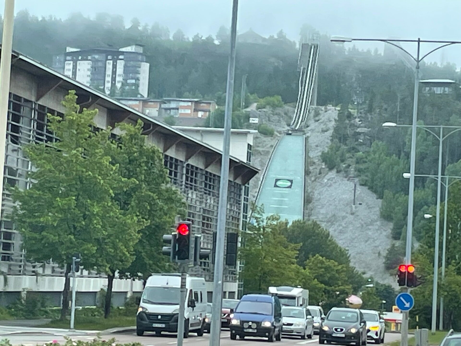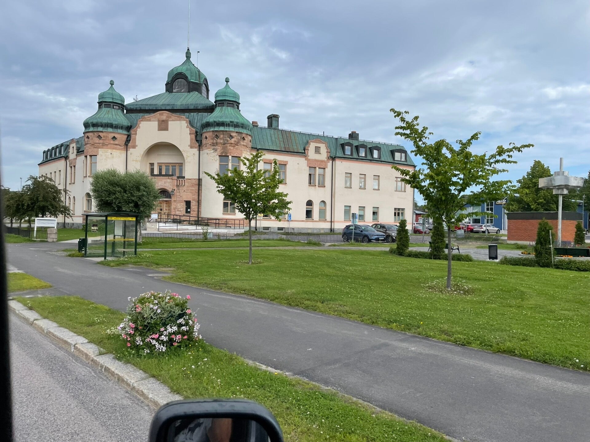 vom ältesten Leuchtturm fuhren wir bei bedecktem Himmel weiter auf der E4 Richtung Umea. Dort sollte die Hymer Niederlassung unsere Reifen und die Fixierung des Tisches bearbeiten. Nach anstrengender Fahrt in strömendem Regen erreichten wir die Werkstatt. Leider waren sie völlig ausgebucht, konnten uns aber zum Tausch der Reifen an den benachbarten Reifenservice vermitteln. Innerhalb einer halben Stunde hatte der junge Mann die Vorder- und Hinterreifen getauscht. Zurück in der Hymer Niederlassung half ein Mitarbeiter den Tisch zu fixieren … die Reparatur konnte nicht durchgeführt werden. Nochmals fuhren wir zum Reifenservice, denn der Luftdruck der Reifen musste ebenfalls angeglichen werden. Auf unserem Weg lag „Husum“ und wir konnten in Örnsköldsvek die Architektur und die Sprungschanze bewundern. Die Weiterfahrt Richtung Härnösand -in guter Straßenlage unseres Mobils(!) - über leicht bergige Straßen entlang der Küste brachte zwar nicht die gewünschten Übernachtungsplätze (diese erwiesen sich als recht abseits und wenig einladend gelegen) dann aber doch noch die freie Sicht und in Härnösand sogar Abendsonne. Wir parkten am Automuseum und machten entlang des Hafens einen Stadtrundgang.
