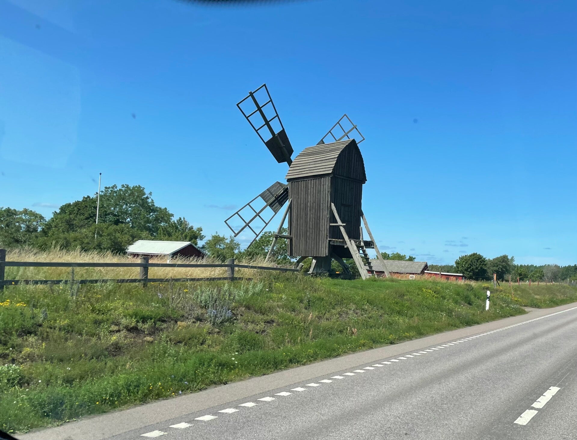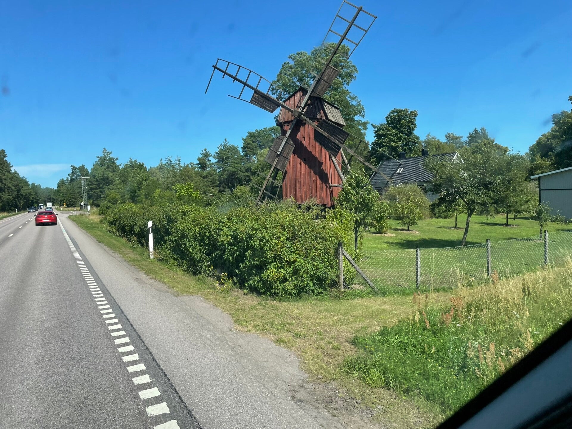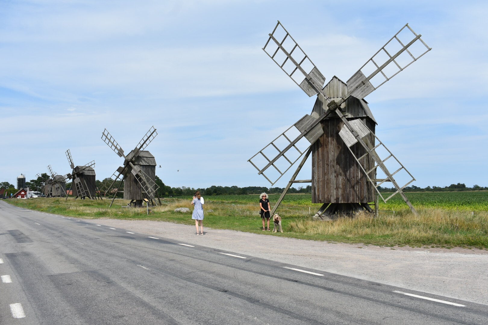Hardy war immer noch nicht wieder fit … die Leckerchen aus der besten Bäckerei Ölands sollten ebenso aufmuntern wie die geplante Tour zum Süden der Insel: die Mühlen, Borgholm und der lange Jan sowie der Golfclub waren geplant. Borgholm als touristisches Highlight der Insel konnte uns nicht faszinieren. An den Mühlen hatten wir unser Picknick und das Wetter war noch fantastisch. Das sollte sich ändern und so regnete es am Leuchtturm und am Golfclub in Strömen. Wir suchten uns benachbart einen Übernachtungsplatz und trafen dort das dänische Ehepaar/ Roadsurfer wieder.