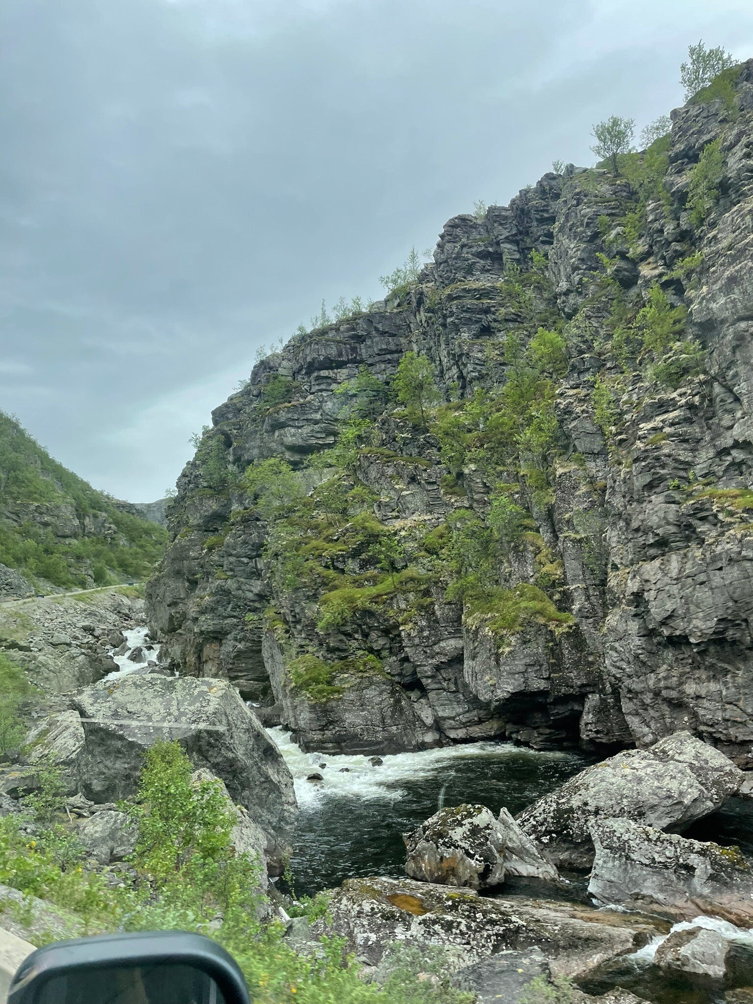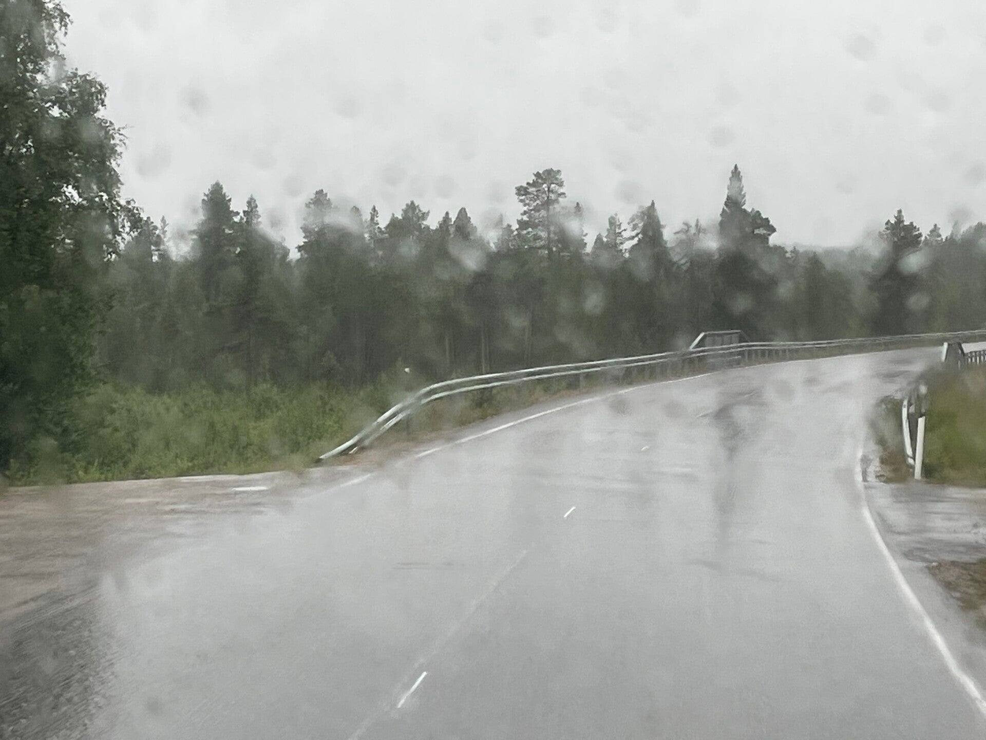 Unterwegs von Hammerfest Richtung Alta verschlechterte sich das Wetter. Rentiere waren eifrig unterwegs und hüteten ihre Jungtiere. Selbst die LKW Fahrer mussten anhalten. Bei Ankunft in Alta regnete es dann in Strömen und wir entschieden nach kurzer Kaffeepause weiterzufahren. Unser Ziel war die Silberschmiede in Kautokaino. Der Regen, die Mücken und das ansonsten kaum vorhandene kulturelle bzw. Naturverbundene Angebot (wir fischen nicht!) bewegten uns die Weiterfahrt nach Finnland bei strömendem Regen anzutreten. Eintönige Straßen, gesäumt von Sumpf, Seen und Wäldern sowie Aquaplaning erschwerten die Fahrt und wir machten gegen 20 Uhr Station in Muonio. Alles voller Stechmücken … Hardy wagte sich mit Watson raus - bewundernswert!